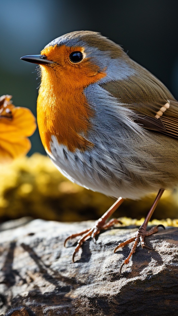 Edytor tapety: Kolorowy rudzik na kamieniu