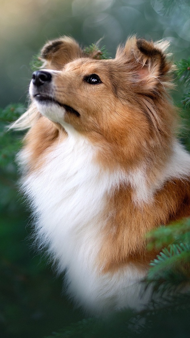 Edytor tapety: Patrzący w górę owczarek szetlandzki