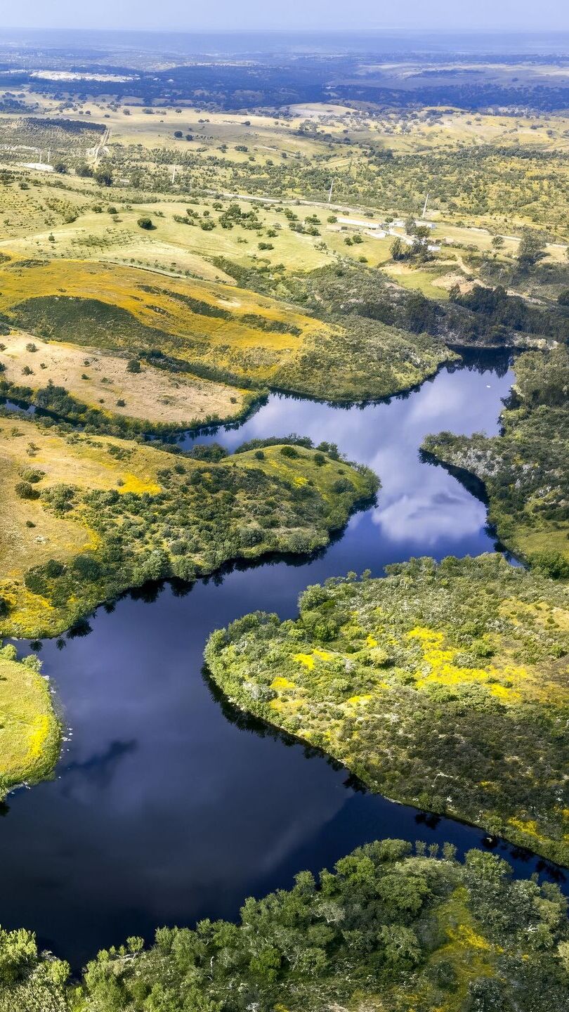 Edytor tapety: Kręta rzeka pośród wzgórz