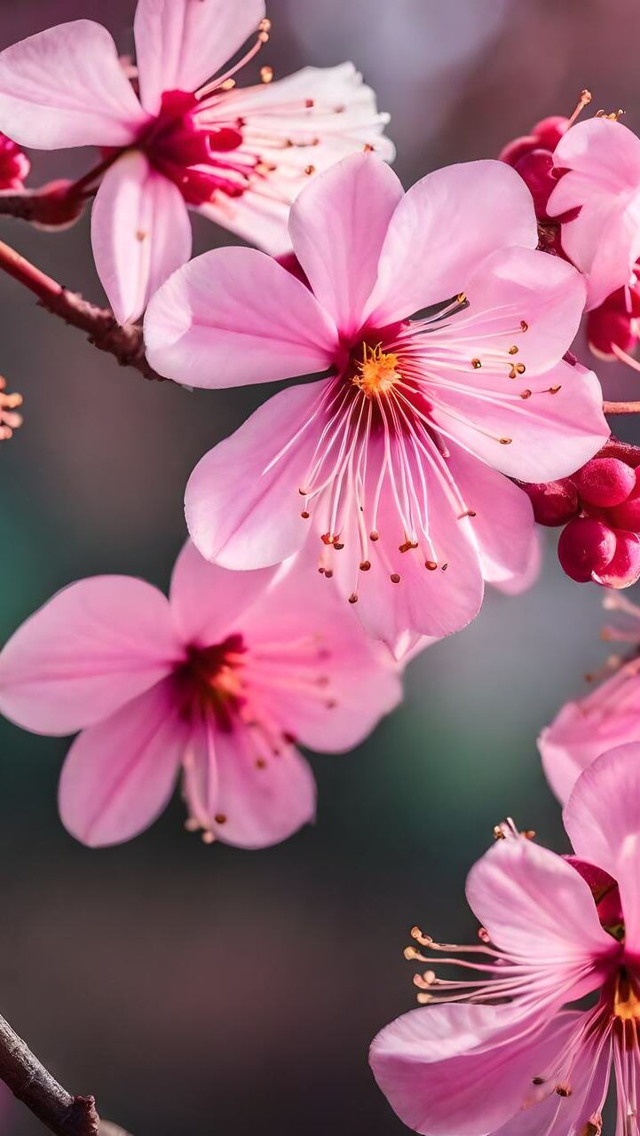 Edytor tapety: Różowe kwiaty drzewa owocowego w zbliżeniu