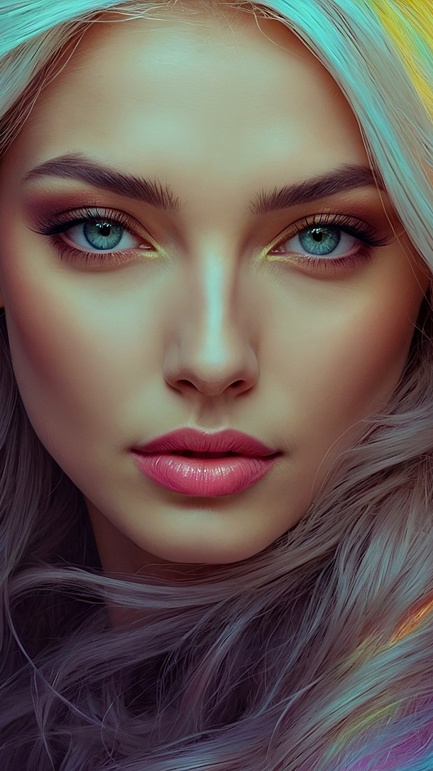 Edytor tapety: Twarz długowłosej kobiety w zbliżeniu