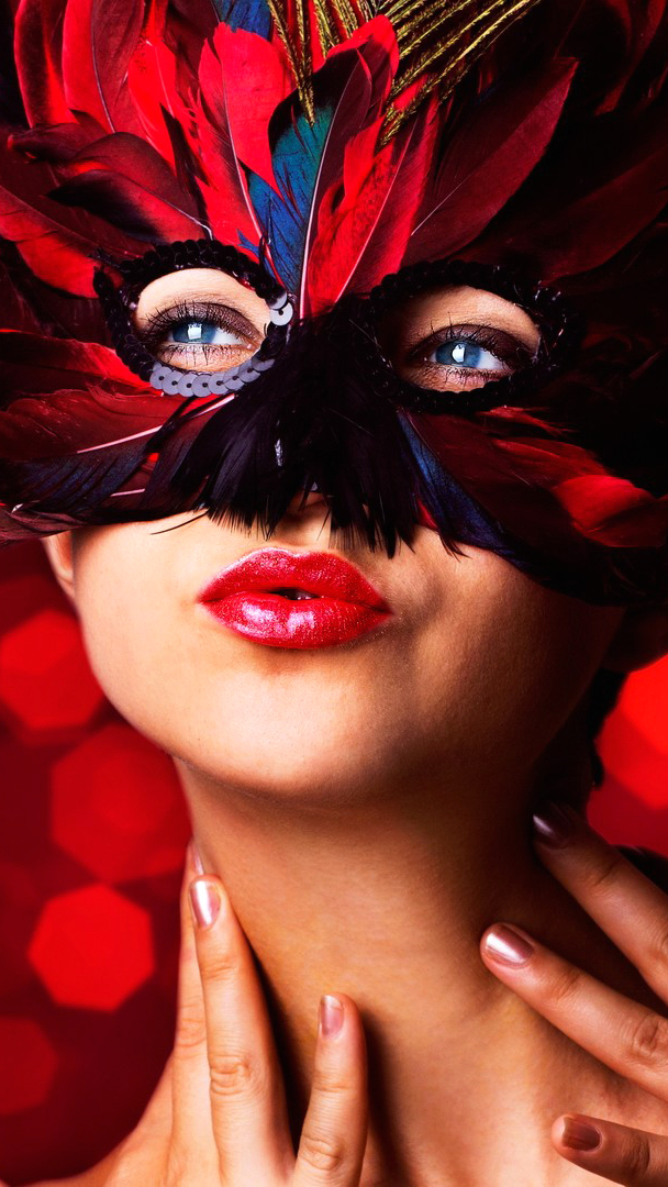 Edytor tapety: Twarz kobiety w masce z piór