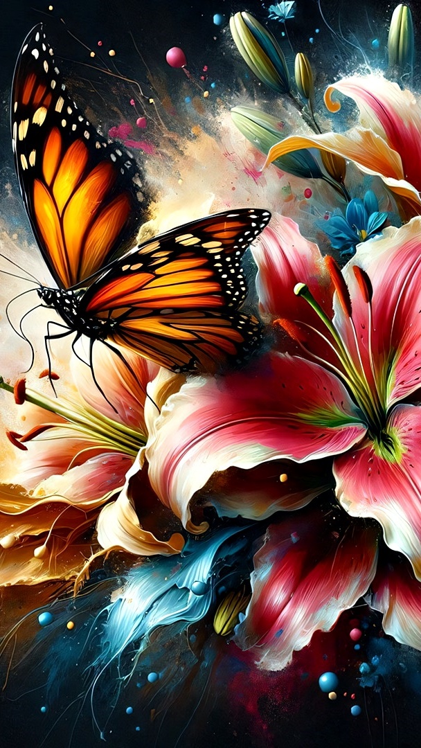 Edytor tapety: Motyl na różowej lilii w grafice