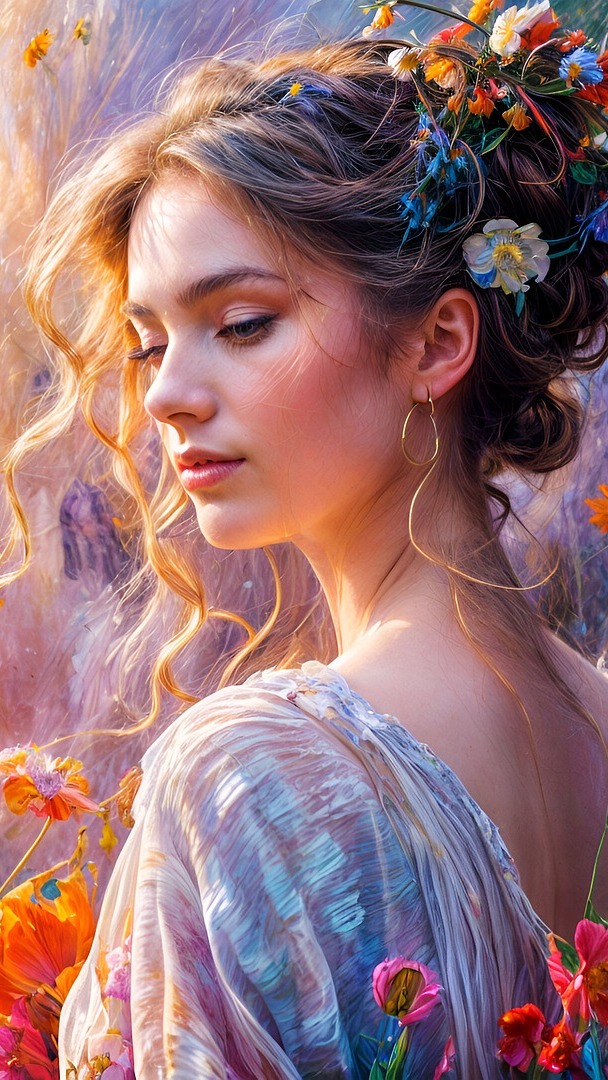 Edytor tapety: Kwiaty w upiętych włosach kobiety