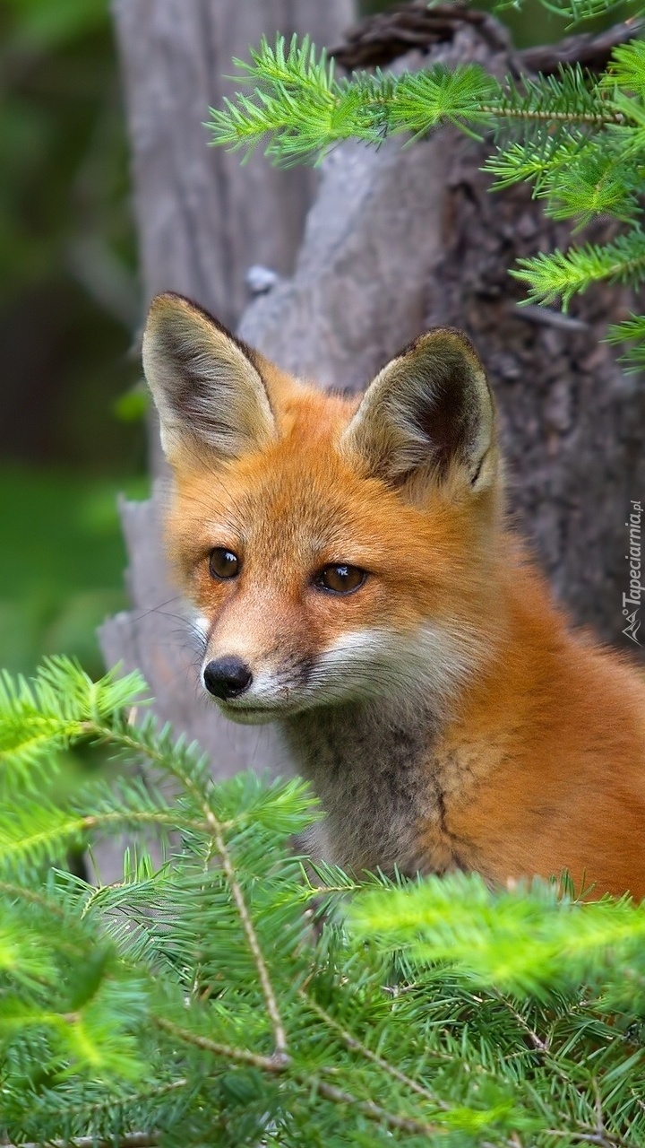 Edytor tapety: Lisek wśród iglaków