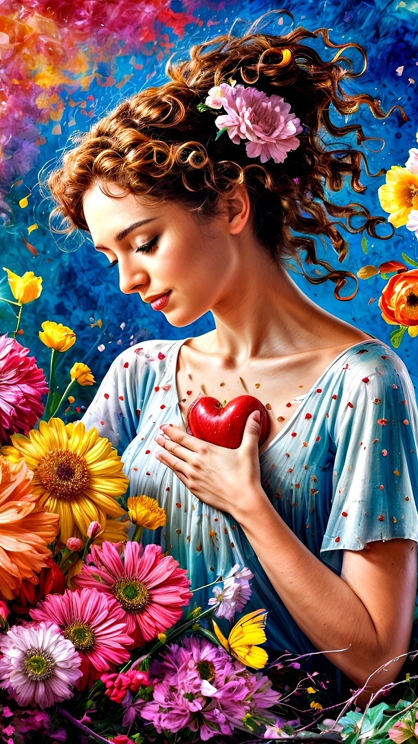 Edytor tapety: Grafika kobiety z sercem w ręce