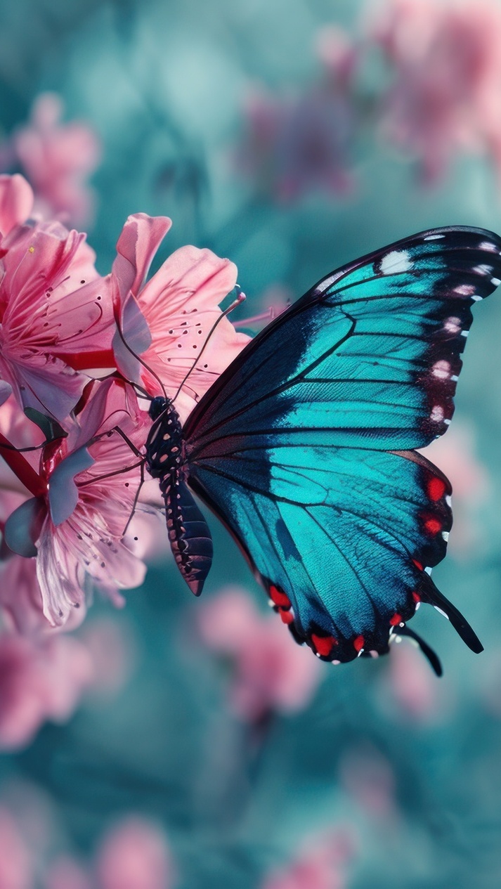 Edytor tapety: Niebieski motyl na różowych kwiatach
