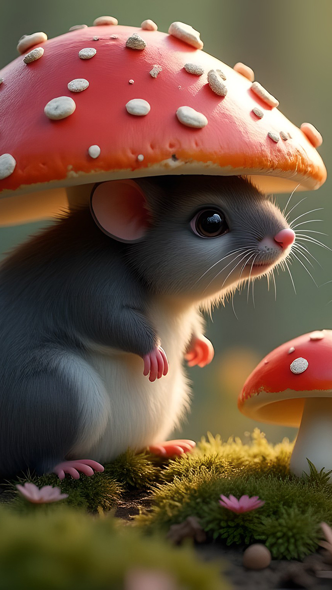 Edytor tapety: Myszka pod muchomorem