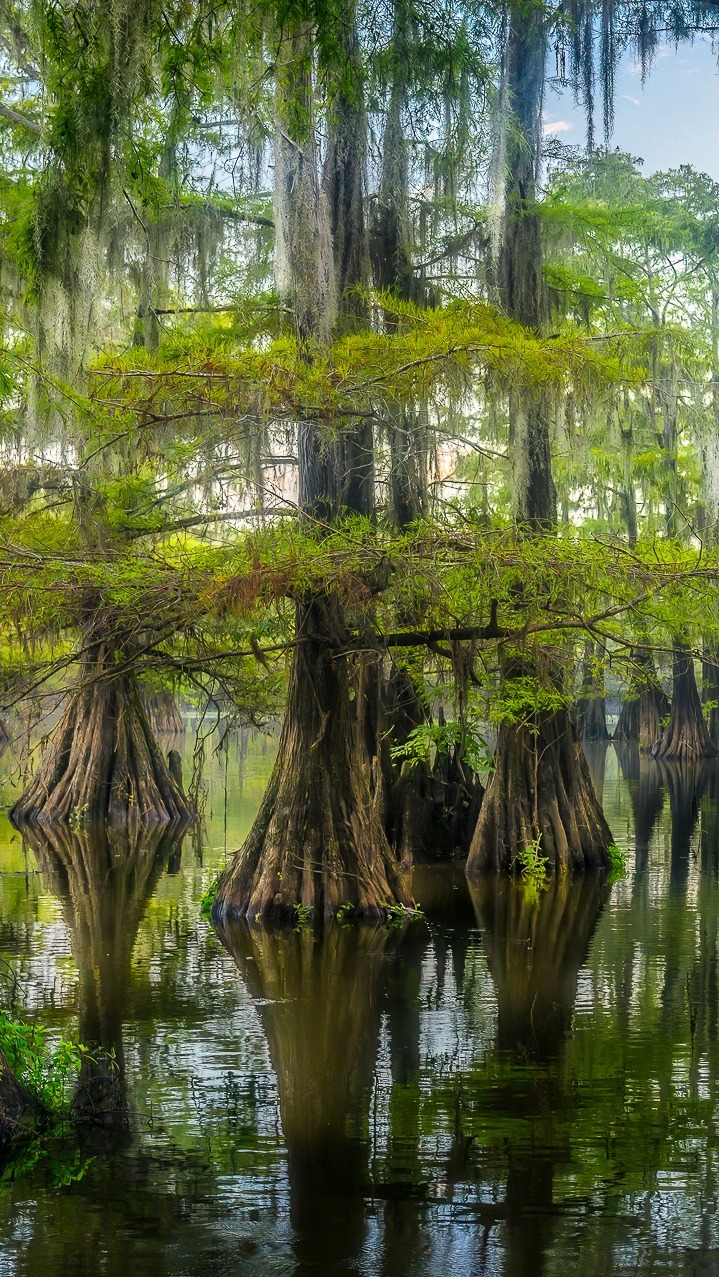 Edytor tapety: Cyprysy bagienne w jeziorze Caddo Lake