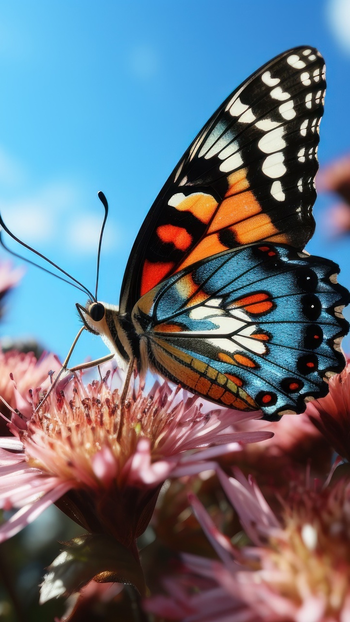 Edytor tapety: Kolorowy motyl na różowych kwiatach