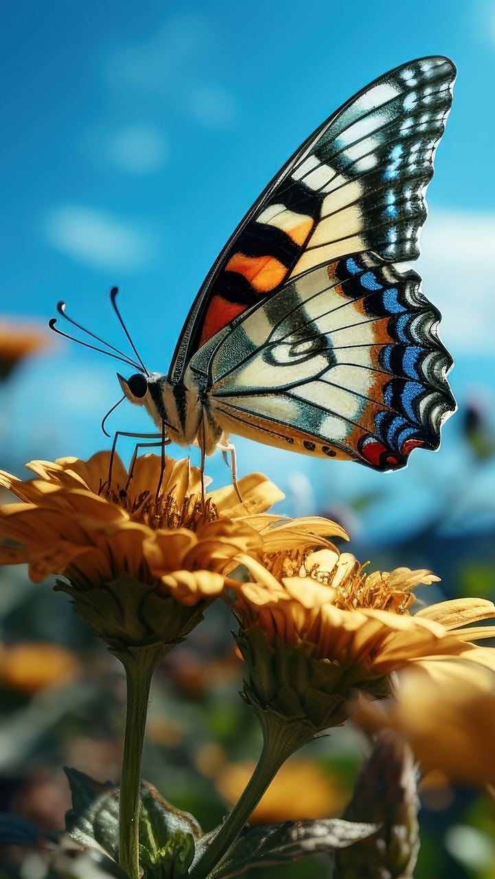 Edytor tapety: Kolorowy motyl na żółtych kwiatach