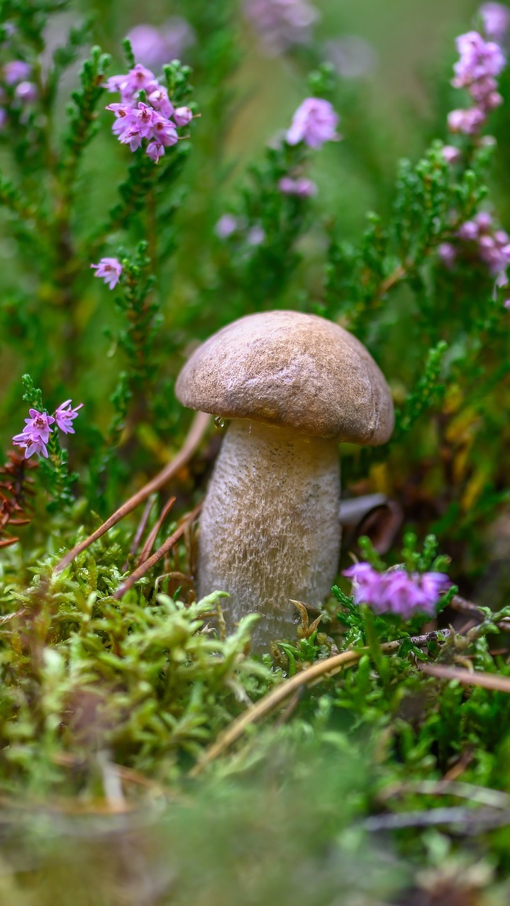 Edytor tapety: Grzyb obok wrzosów