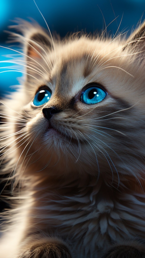 Edytor tapety: Mały niebieskooki kotek spoglądający w górę