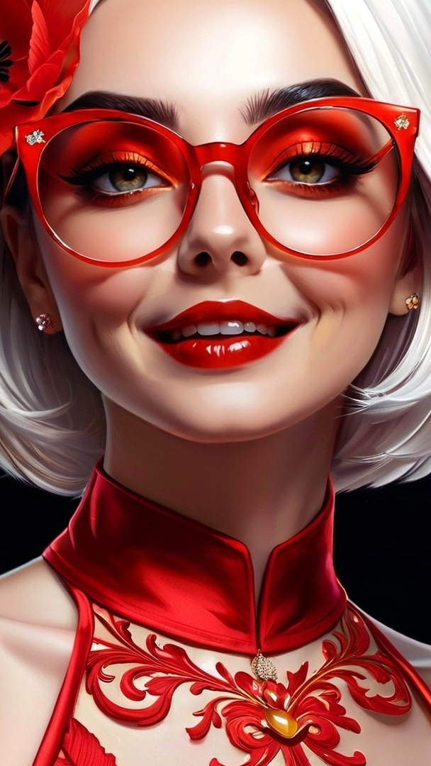 Edytor tapety: Uśmiechnięta blondynka w czerwonych okularach