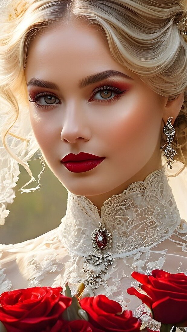 Edytor tapety: Panna młoda z bukietem czerwonych róż