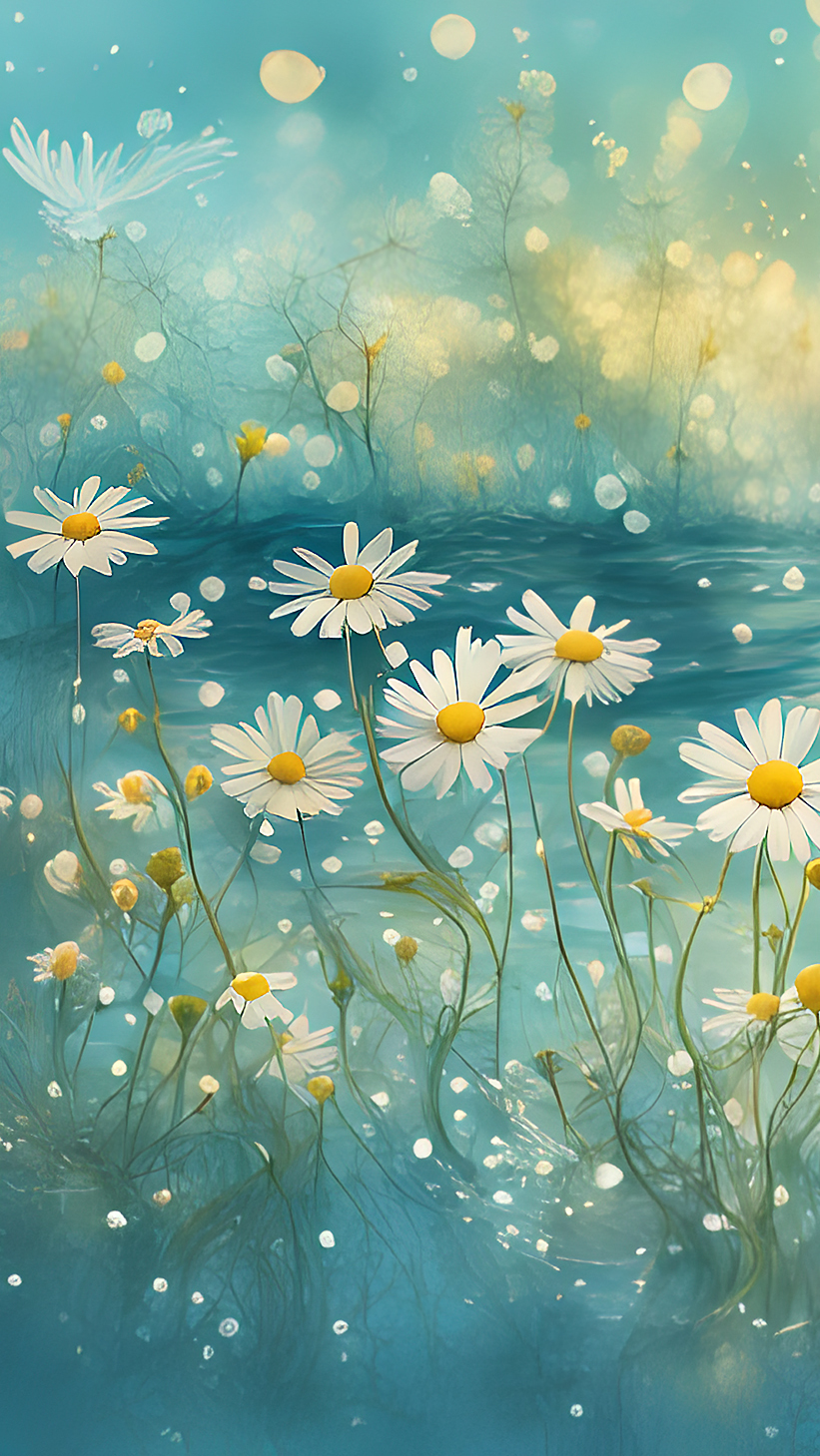 Edytor tapety: Rozświetlone białe margerytki w grafice