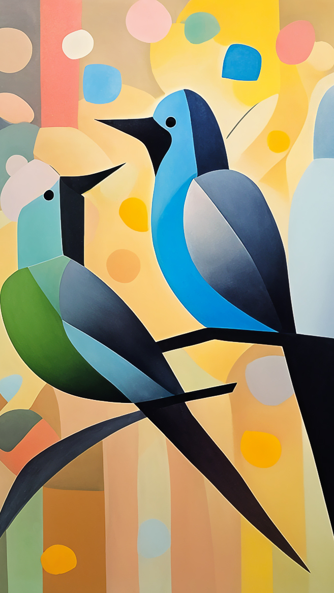 Edytor tapety: Grafika z dwoma kolorowymi ptakami
