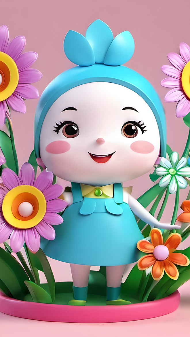 Edytor tapety: Grafika z lalką obok kwiatów