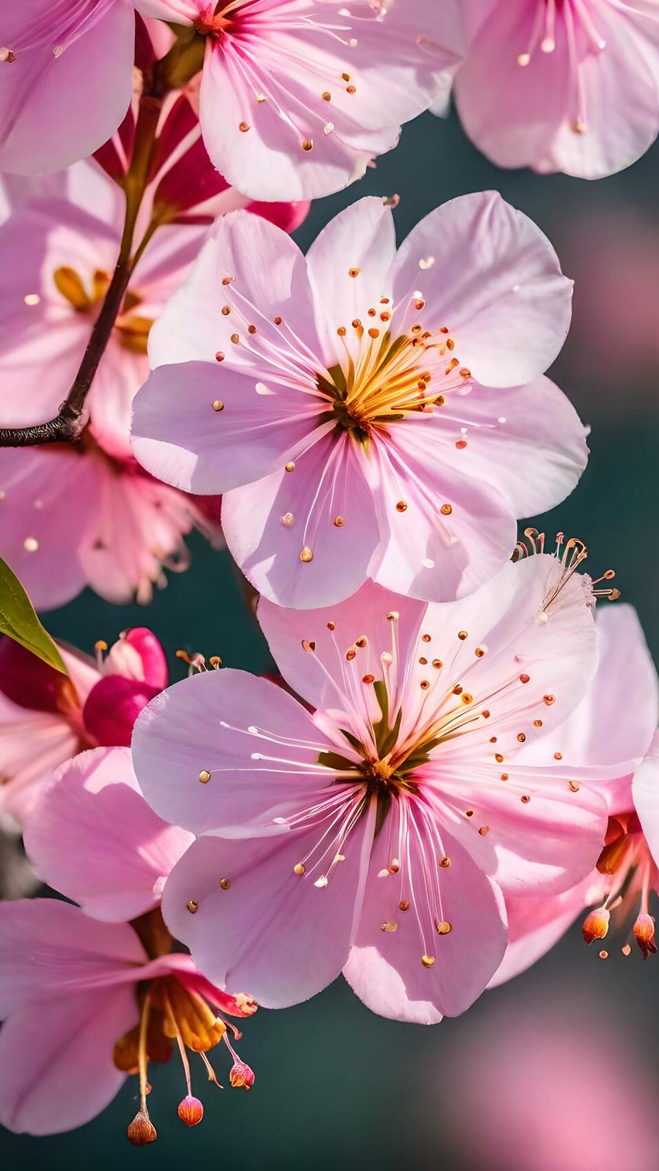 Edytor tapety: Różowe kwiaty na gałązce w zbliżeniu