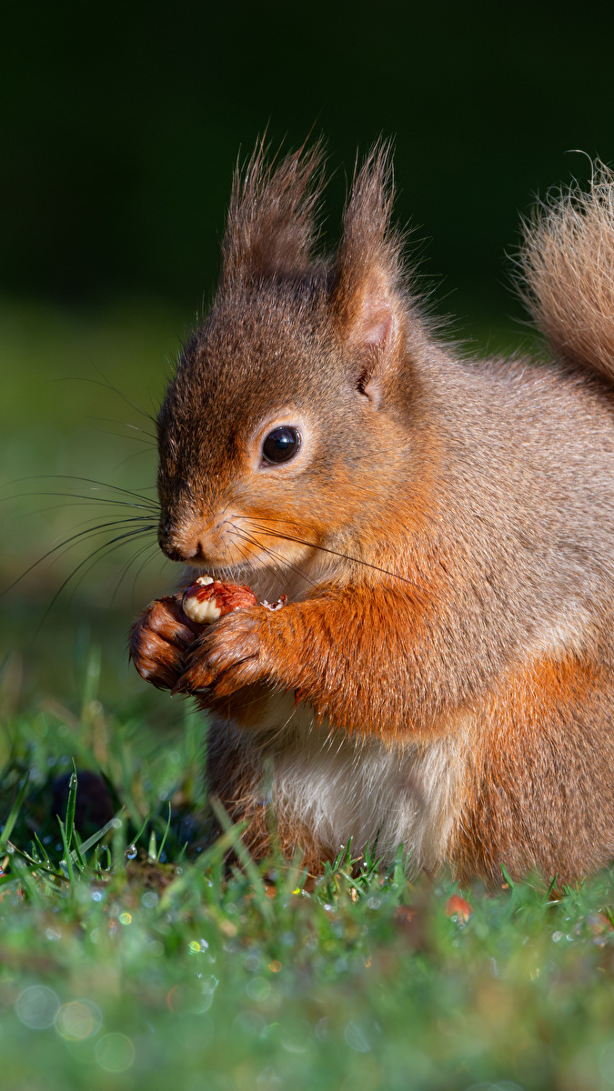 Edytor tapety: Wiewiórka z orzechem na trawie
