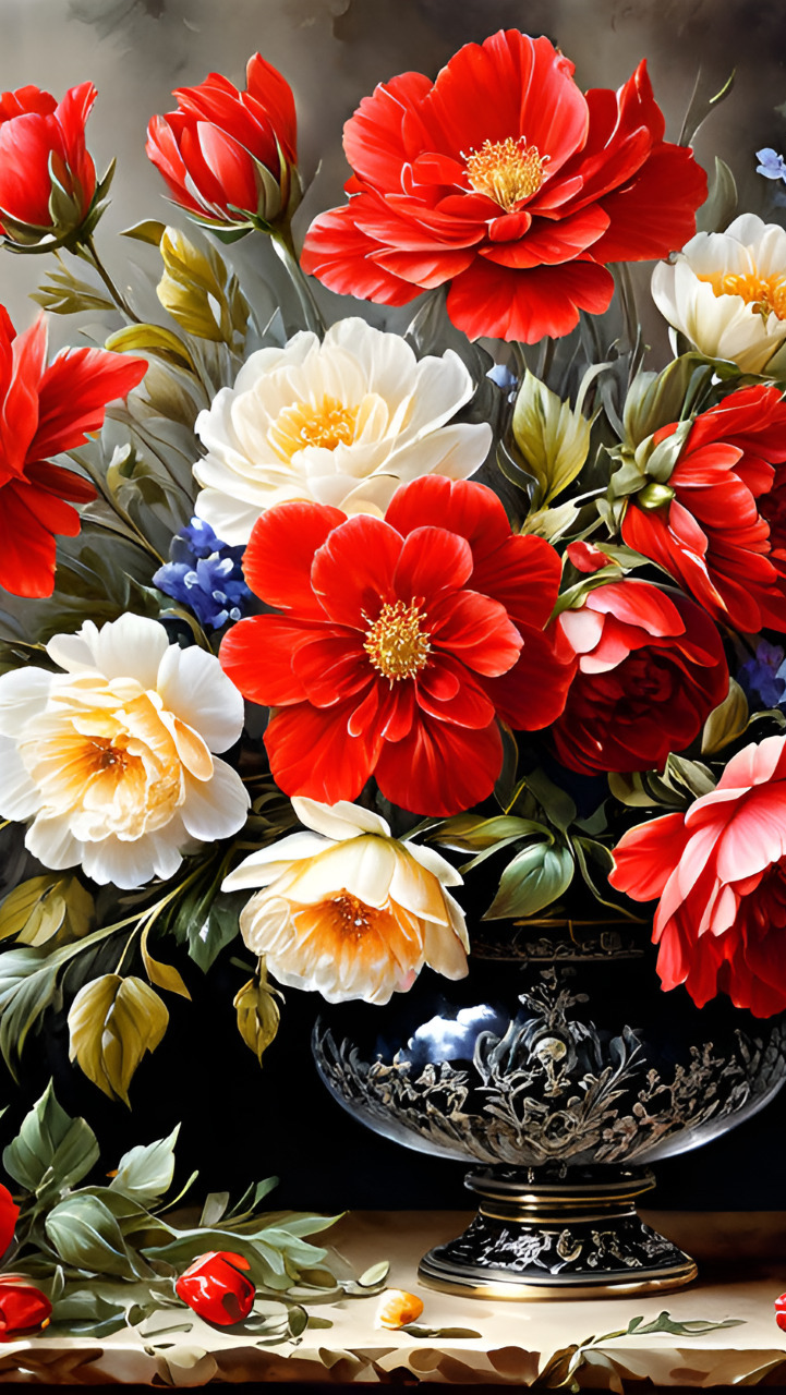 Edytor tapety: Bukiet kolorowych kwiatów w wazie