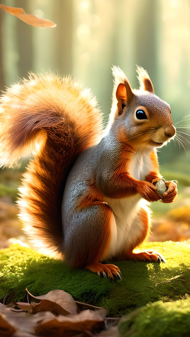 Edytor tapety: Wiewiórka na mchu w blasku światła