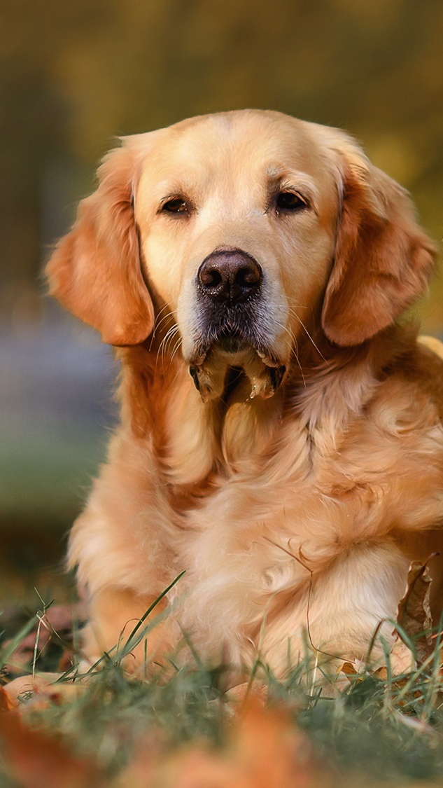 Edytor tapety: Golden retriever leżący na trawie