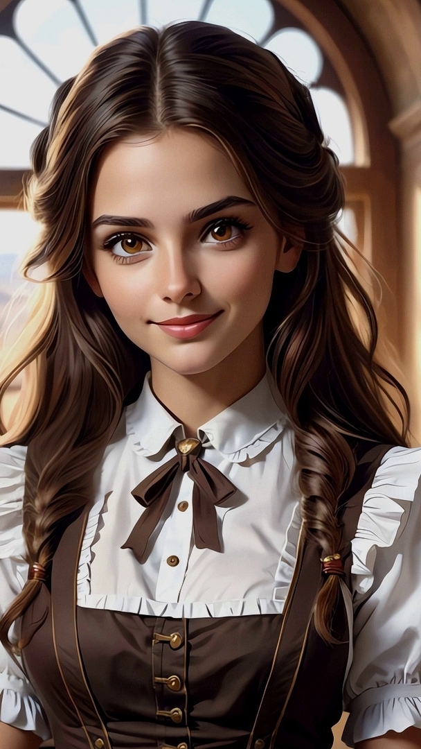 Edytor tapety: Długowłosa dziewczyna w białej bluzce