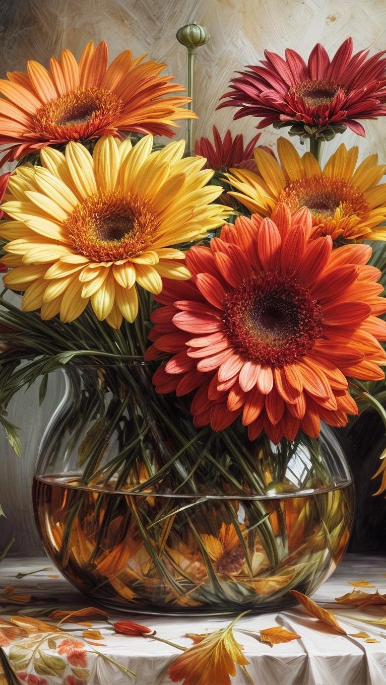 Edytor tapety: Gerbery w szklanym wazonie