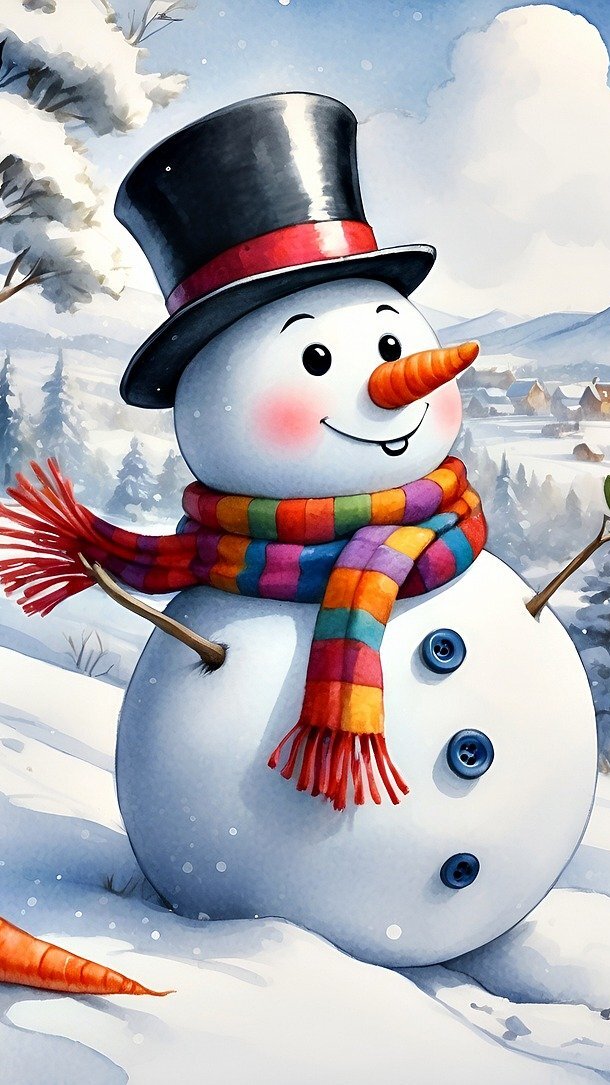 Edytor tapety: Bałwan w kraciastym szaliku i kapeluszu