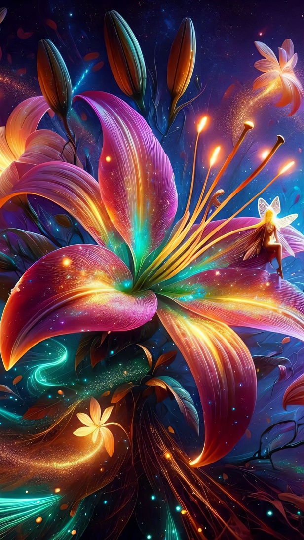 Edytor tapety: Rozświetlona lilia z pąkami w grafice