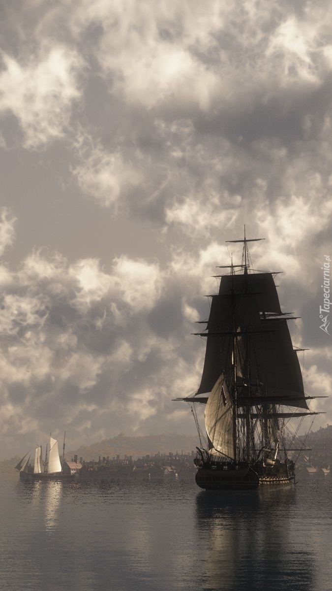 Edytor tapety: Żaglowiec zbliża się do portu