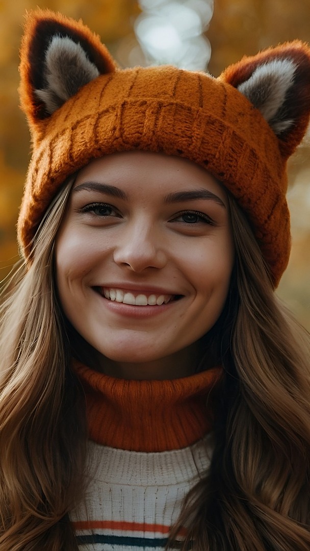 Edytor tapety: Uśmiechnięta dziewczyna w czapce z uszami