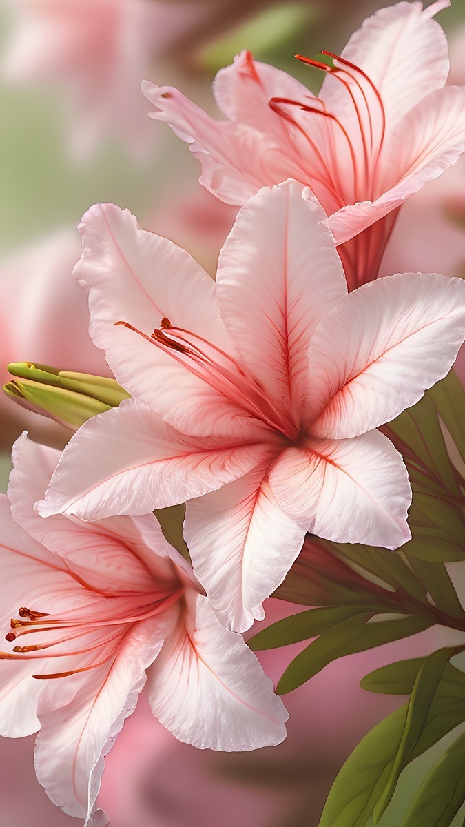 Edytor tapety: Jasnoróżowe kwiaty azalii w zbliżeniu