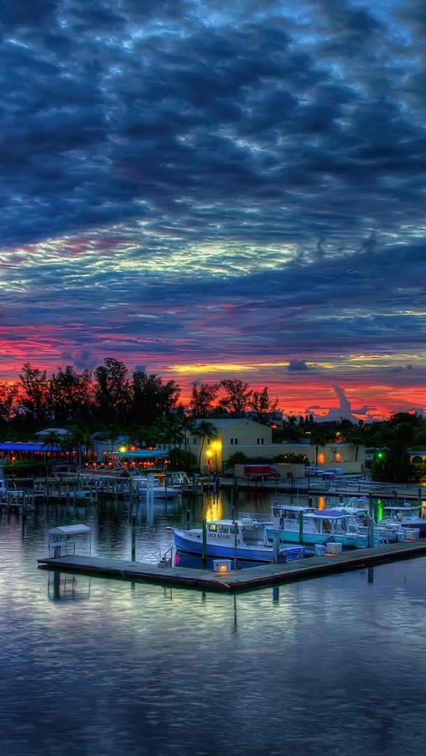 Edytor tapety: Pochmurne niebo nad przystanią na jeziorze