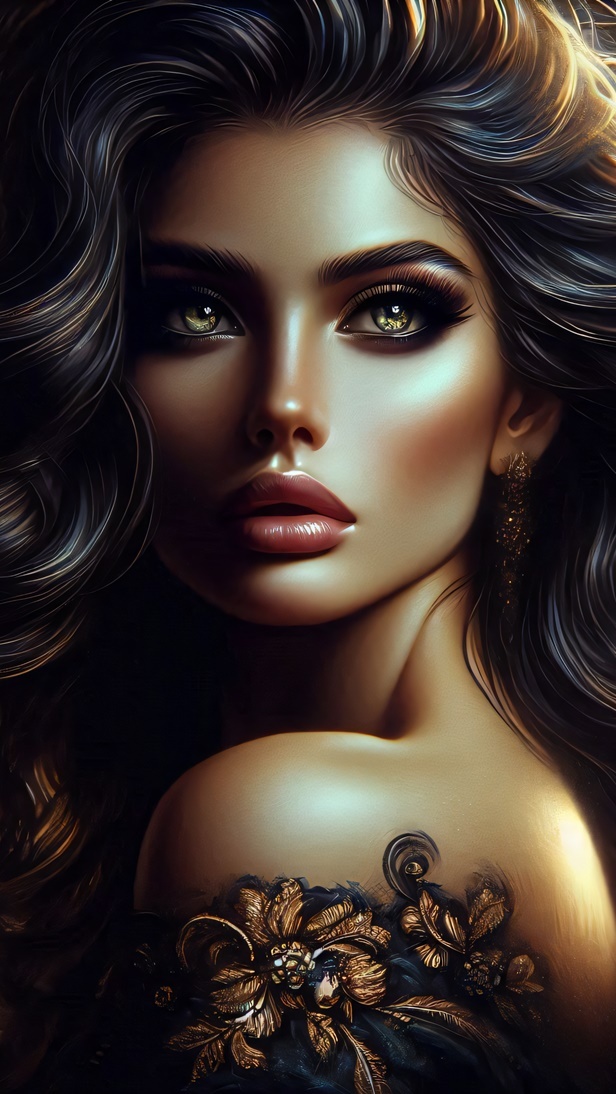 Edytor tapety: Długowłosa kobieta z tatuażem na ramieniu