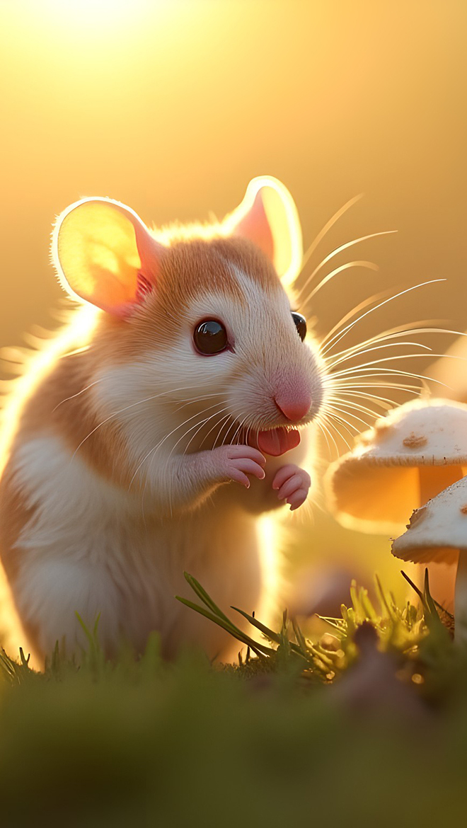 Edytor tapety: Myszka obok grzybków w grafice