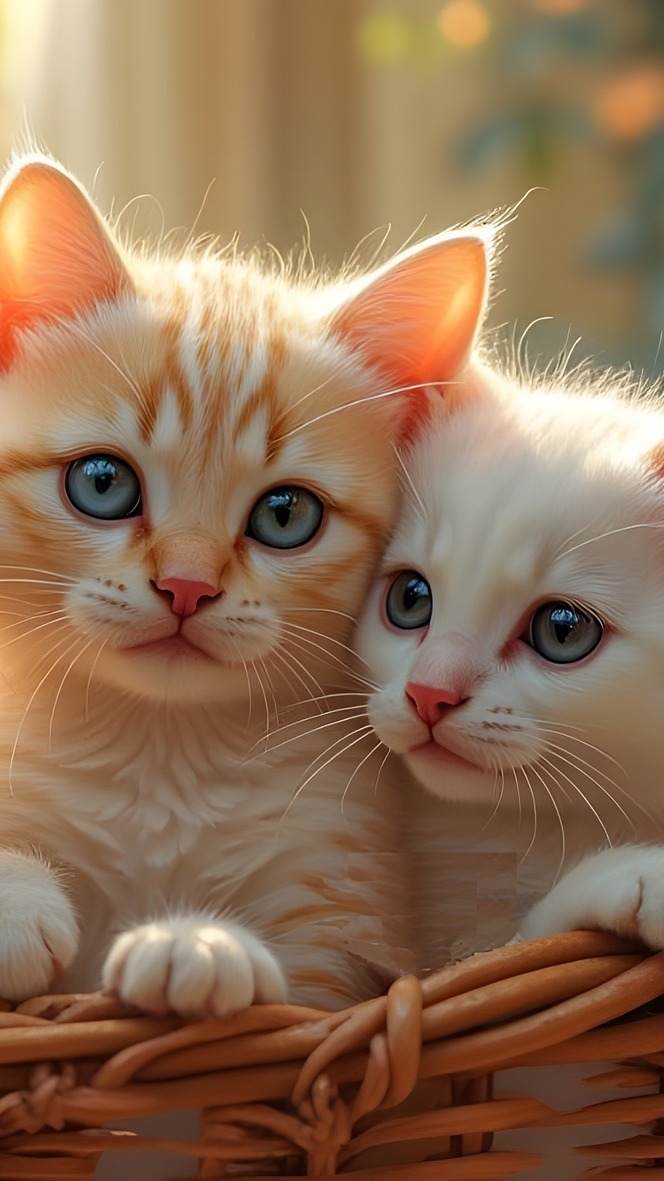 Edytor tapety: Dwa małe białe kotki w koszyku