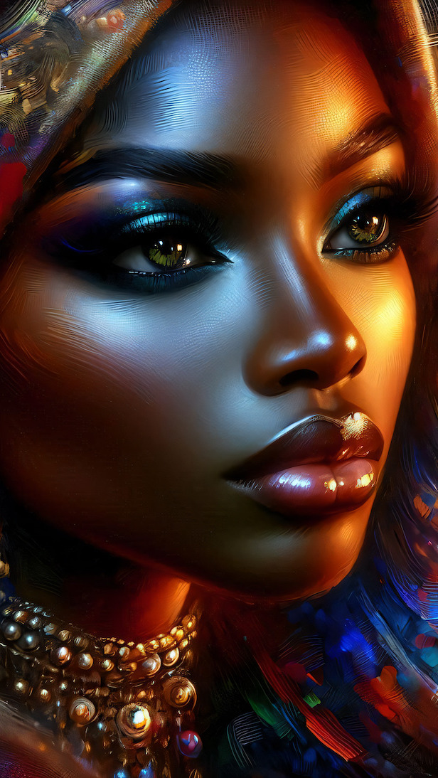 Edytor tapety: Twarz ciemnoskórej kobiety w makijażu