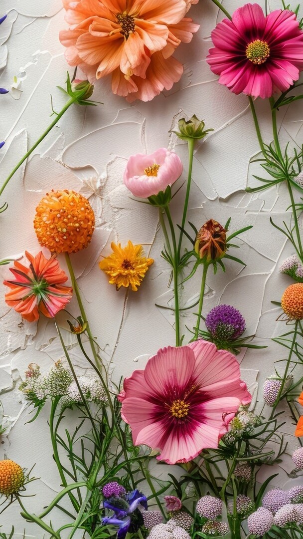 Edytor tapety: Kolorowe kwiaty na białym tle