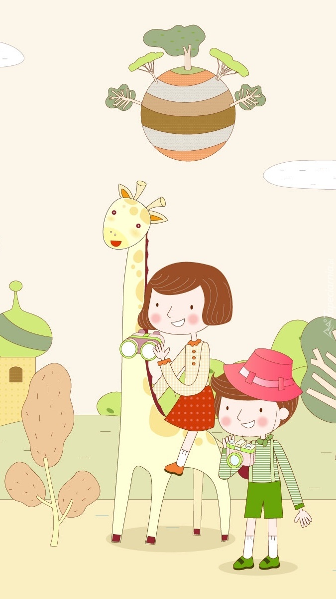 Edytor tapety: Wycieczka z żyrafą w grafice