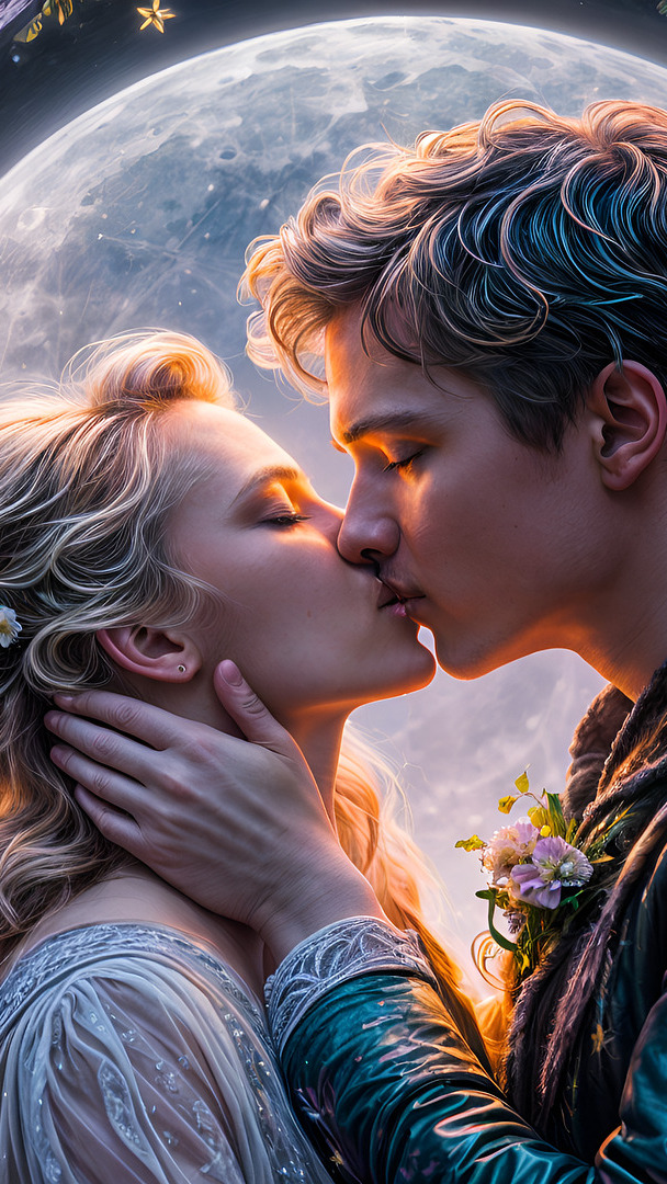 Edytor tapety: Pocałunek zakochanych na tle księżyca