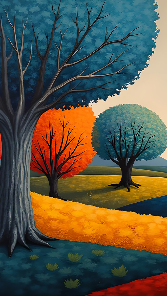 Edytor tapety: Kolorowe drzewa w grafice 2D