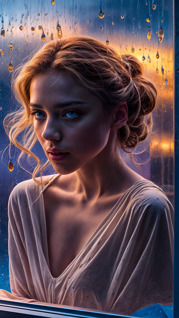 Edytor tapety: Grafika z kobietą przy mokrej szybie