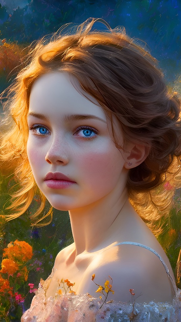 Edytor tapety: Twarz niebieskookiej kobiety z upiętymi włosami