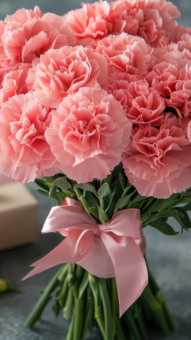 Edytor tapety: Bukiet różowych goździków z kokardą