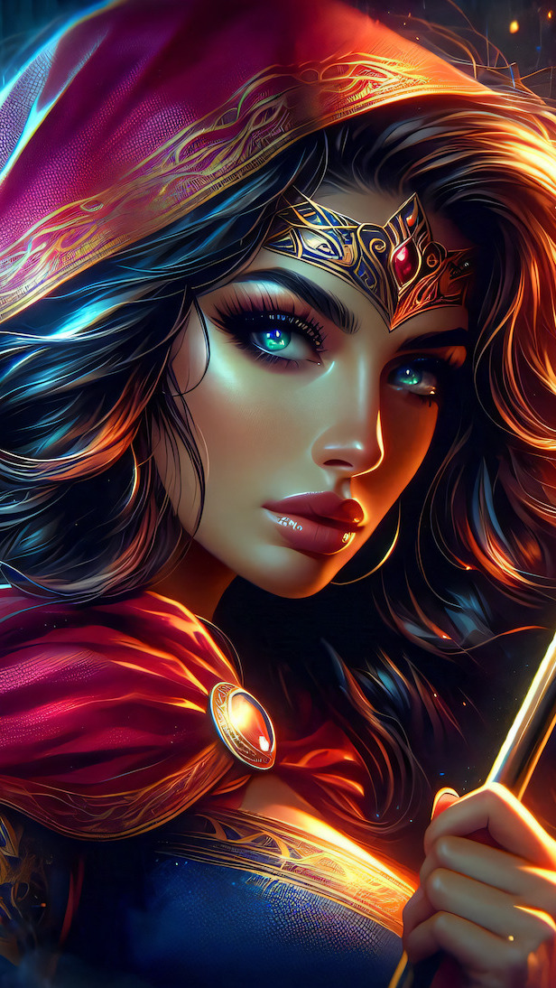 Edytor tapety: Kobieta w kapturze i w biżuterii