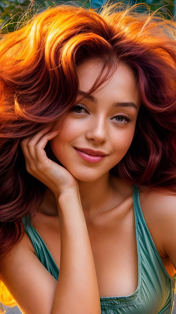 Edytor tapety: Uśmiechnięta rudowłosa kobieta