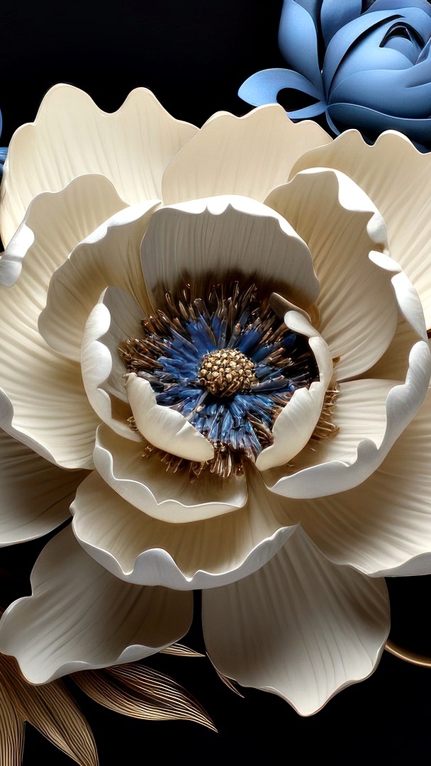 Edytor tapety: Rozwinięty biało-niebieski kwiat w grafice