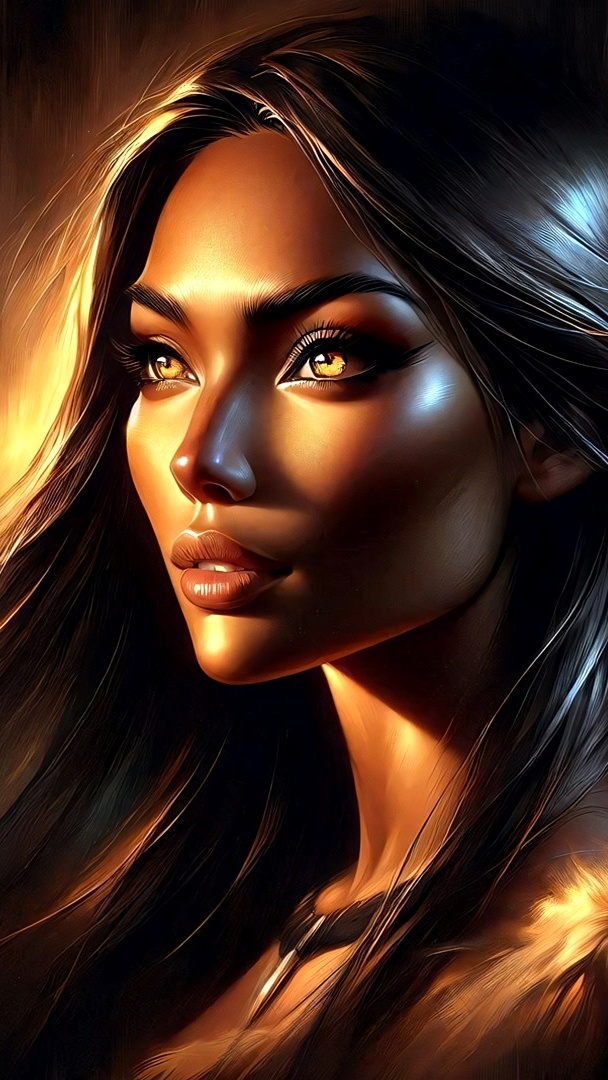 Edytor tapety: Rozświetlona twarz długowłosej szatynki
